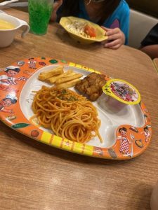お子様メニューも何種類かあります。今回グラタンが品切れだったので、パスタを注文美味しそうなからあげもついてました。
