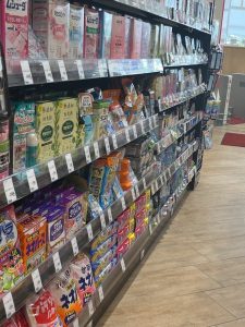 人気過ぎて1列だった棚が今では数列に。しかもフレーバーが増えています。マヨネーズとか黒糖とか胡麻とかも美味しいですが、私はカレーを推したい!!