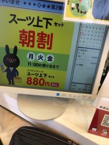 クリーニング専科さんは曜日ごとにさいころふったりくじ引きをやっていたりします(店舗によるかも。並木店はやってる)