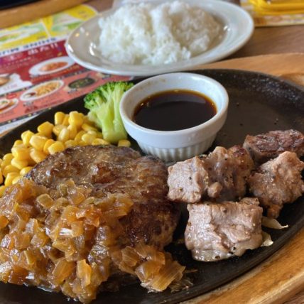 こちらが手塚おすすめ?のジャポネギハンバーグ&カットステーキ