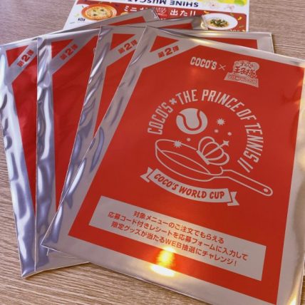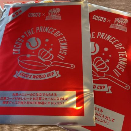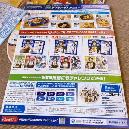 ココスのテニプリコラボでは対象商品を食べると1品につきコラボのクリアファイルが1枚もらえます。