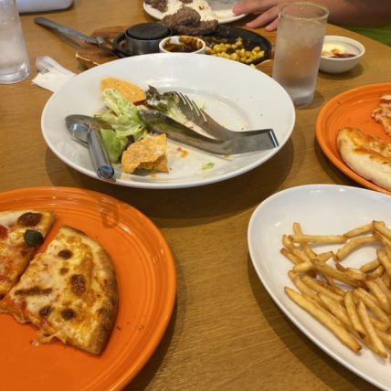 あとは、サラダ、ビーフハンバーグステーキ、ピザ、ポテトなどを注文し