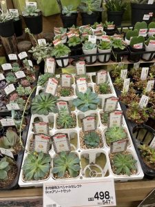 8月のホーマック、多肉植物がたくさんうられえていました。