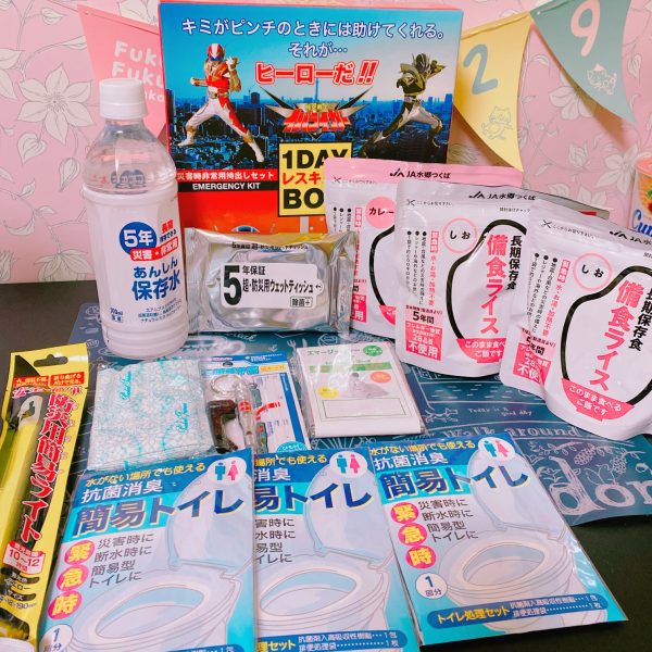 非常用セットは1DAYレスキューBOXと書いてある通り、1日分の防災セットが入ってます。
