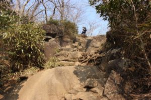 日帰りで登れる山ですが、岩がゴロゴロしていて、普段運動していない大人にとっては結構辛い登山かもしれません。