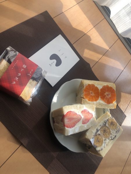 いちご、みかん、チョコバナナのフルーツサンドとラスクを購入。