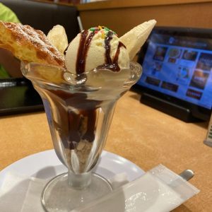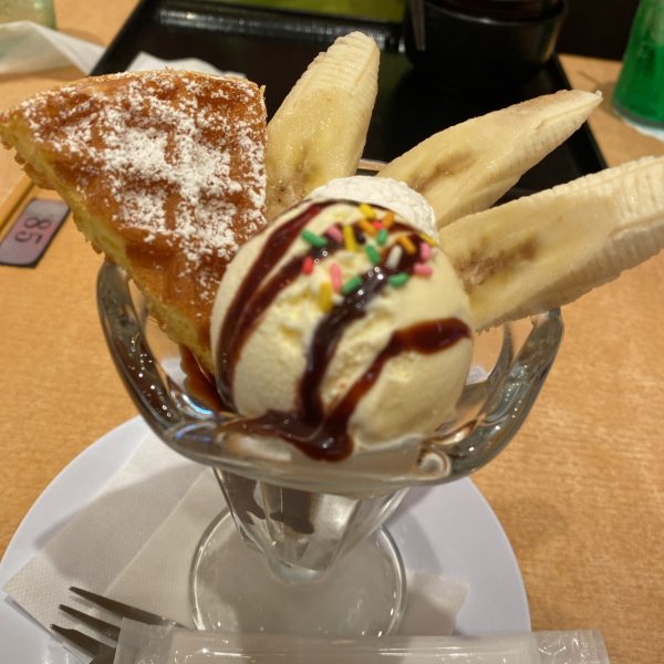 デブなので、追加600円のドリンクとデザートセットでチョコバナナサンデーも注文