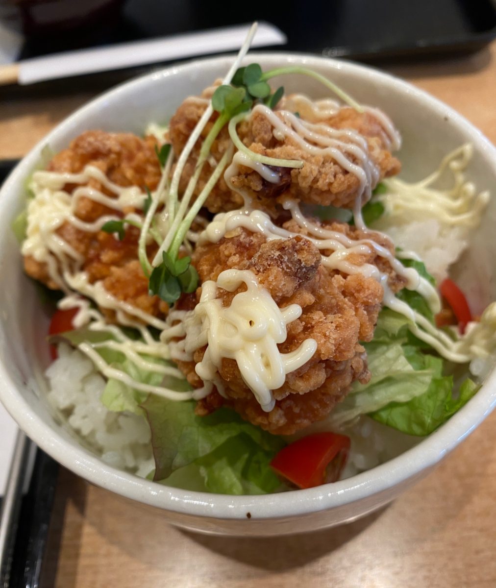 ハラミステーキ丼と竜田揚げ丼のセット。
