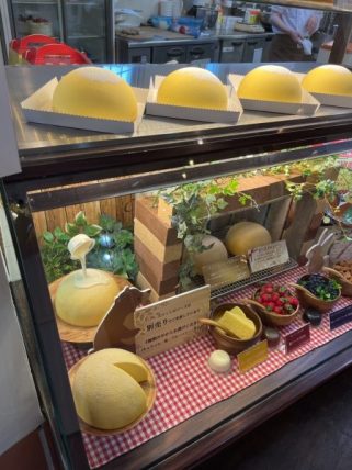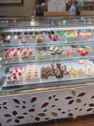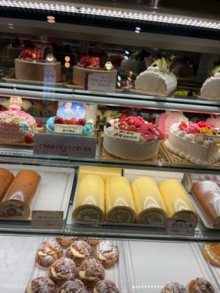 ショーケースには予約のデコレーションケーキが沢山並んでいました。