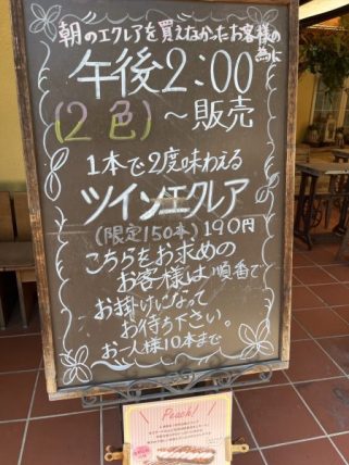 この日は14時に取りに行ったのでエクレアもチーズズコットも売り切れでした。