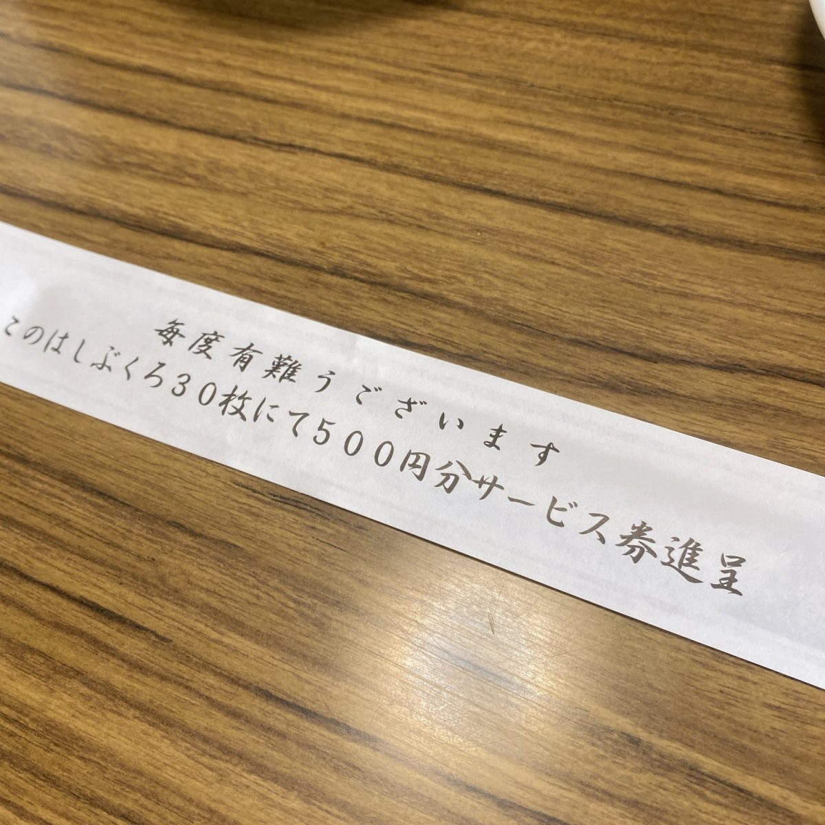 花田庵、箸袋30枚集めると500円引きサービス券くれるそう