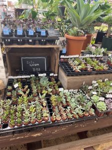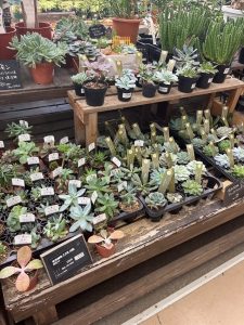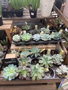 ジョイフル本田荒川沖店のガーデンセンター店内で多肉植物が売られています