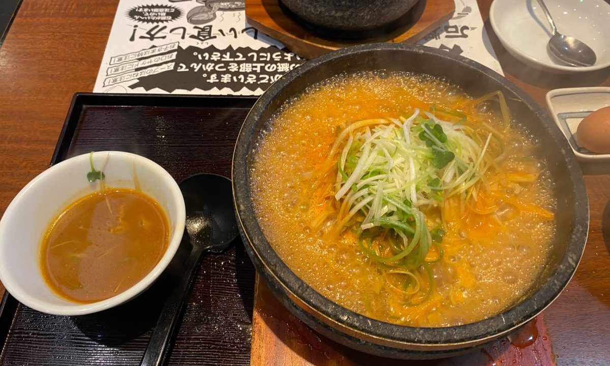 韓国料理で、辛ラーメン?を石焼ビビンバの器にぶち込んだ料理を見たことある気がしたので、そういうやつかと思ってましたが、違いました(笑)
