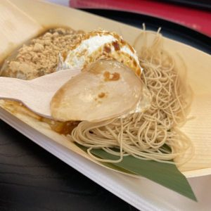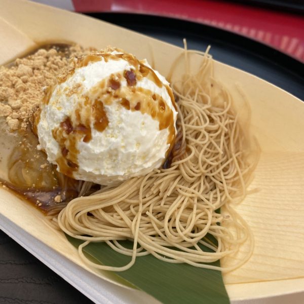 添えてあるクリーム、黒蜜、そしてモンブランの甘味と組み合わせて食べることでバランスよく、