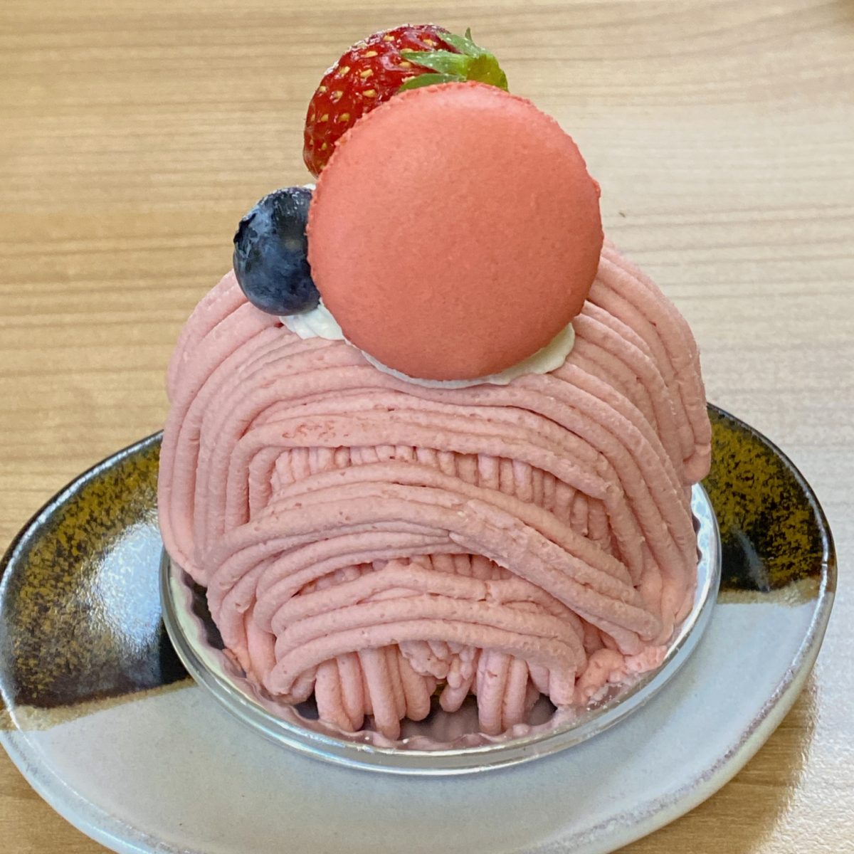 モンブランというと栗のイメージですが、栗系じゃなくって、いちご、ベリー系のケーキです!