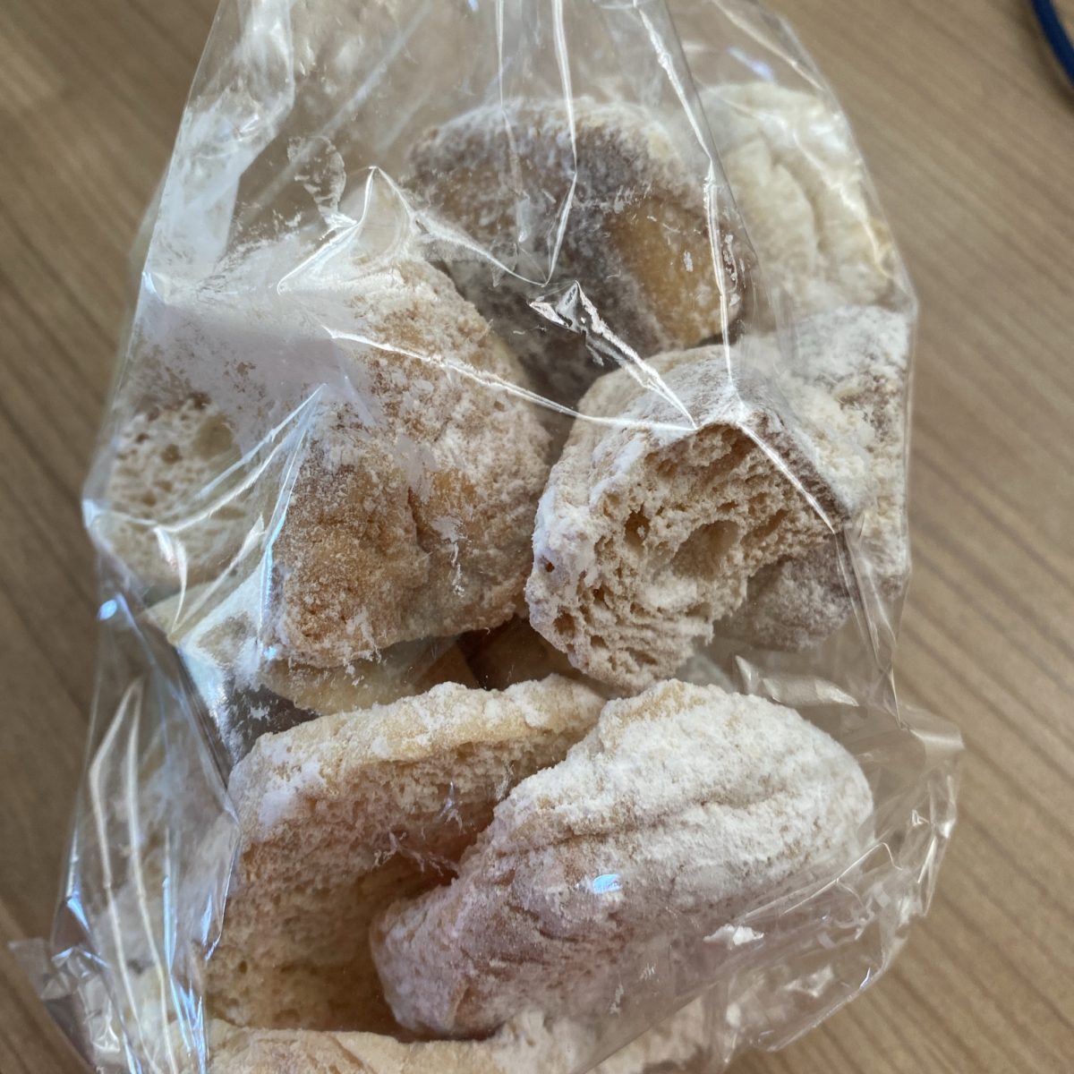 粉砂糖がまぶしてあるラスク。粉砂糖だから?こんなに白いのにそこまで甘さは強くなかったですね