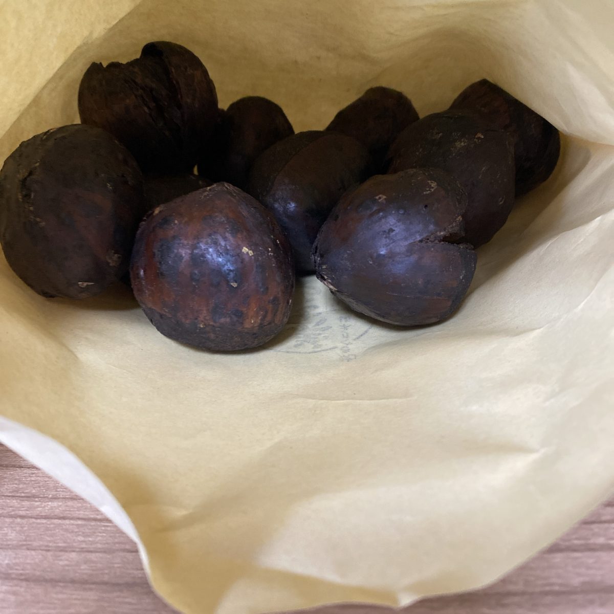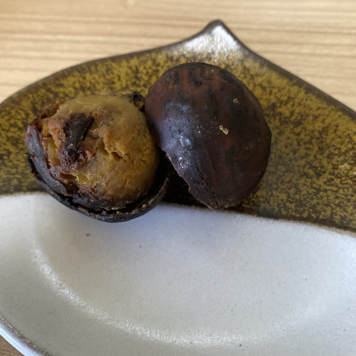 焼き栗、思ったよりこんがり焼かれてました。1つぶ1つぶがデカいです。