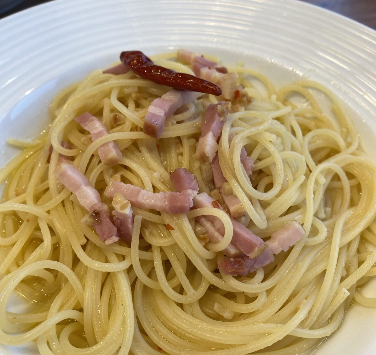 辛いかと思ったらそこまで…、ニンニクが効いていて美味しいペペロンチーノ