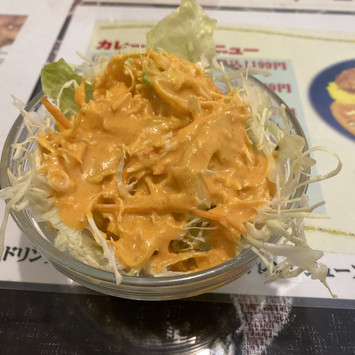 このドレッシングのたれって、美味いけど謎なんですよね。なんのドレッシングなんだろ?カルディに売ってた「リケン インドカレー屋さんの謎ドレッシング」ってやつ、あれ買ったらこの味がおうちで食べられるんかな?