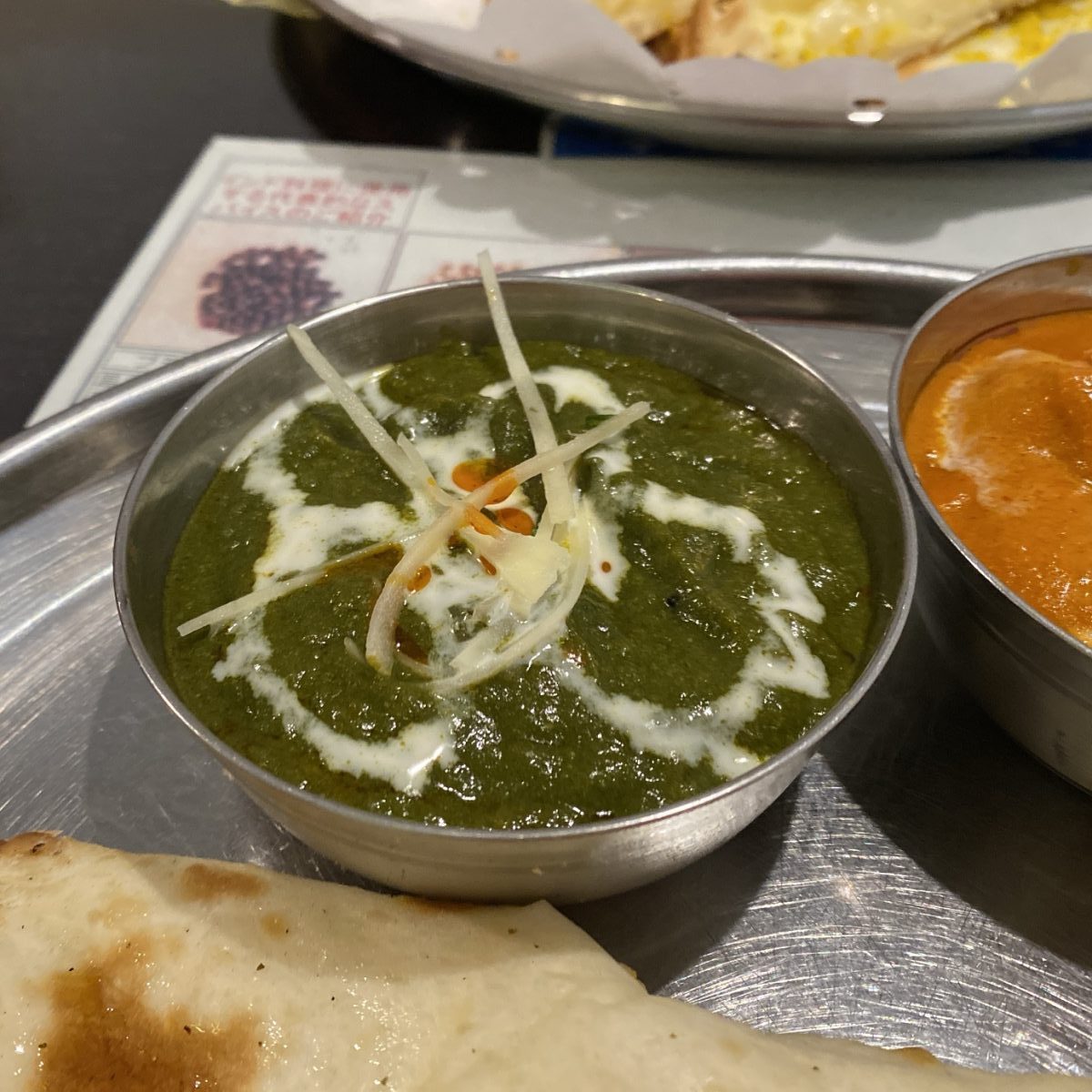 カレーは12種から選べるタイプのランチでした。私はバターチキンとほうれん草のチキンカレーをチョイス。