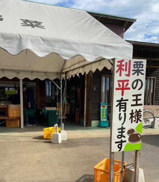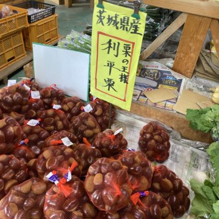 つくばの野菜生産直売所には茨城県産の利平栗がたくさんならんでいました