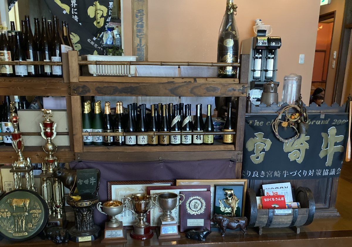 宮崎牛1頭買いのお店で、トロフィーとかたくさん飾ってありました。