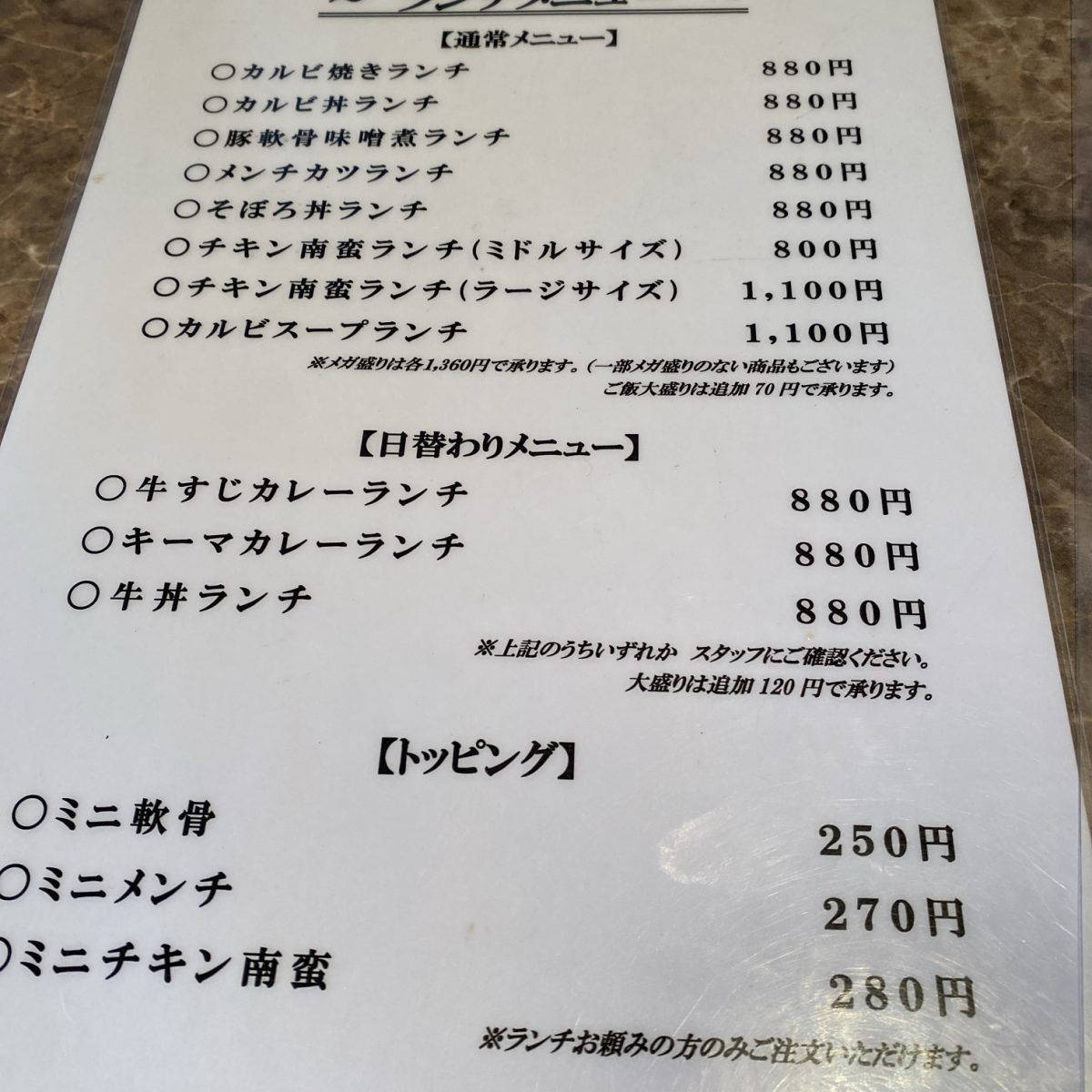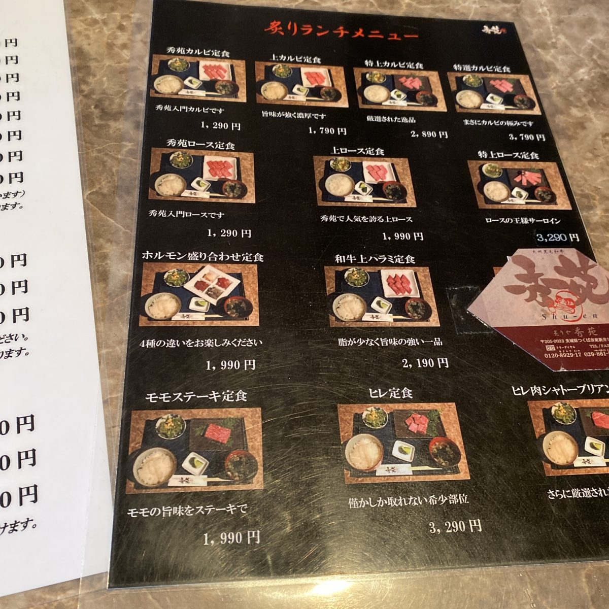 炙りや秀苑のランチメニュー、安いものだと1000円以下で食べられるようです。
