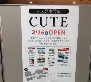 コロナになってマスクが手放せなくなりましたが、まさかイオンモールにマスクの専門店までできるとは。時代が変わっていきますね
