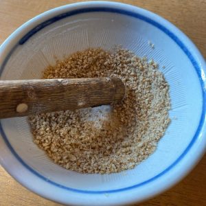 小さいすり鉢でごまをこのくらいすったあたりで、本日のお昼ご飯