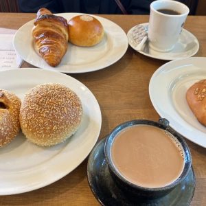 併設されているパン屋さんでパンを買ってドリンクをここで頼むという方式になってました。
