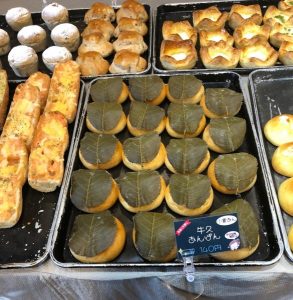 牛久名物?牛久あんぱんというのもでてました。サクラ?の葉っぱ?がついてました。